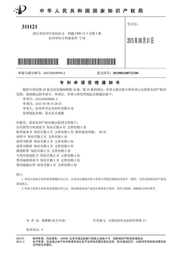 花式反光圖案層的顏色為銀灰色或彩色,花式反光圖案層為銀灰色時,圖案位置反光亮度大于100cd/(lx?m2)。